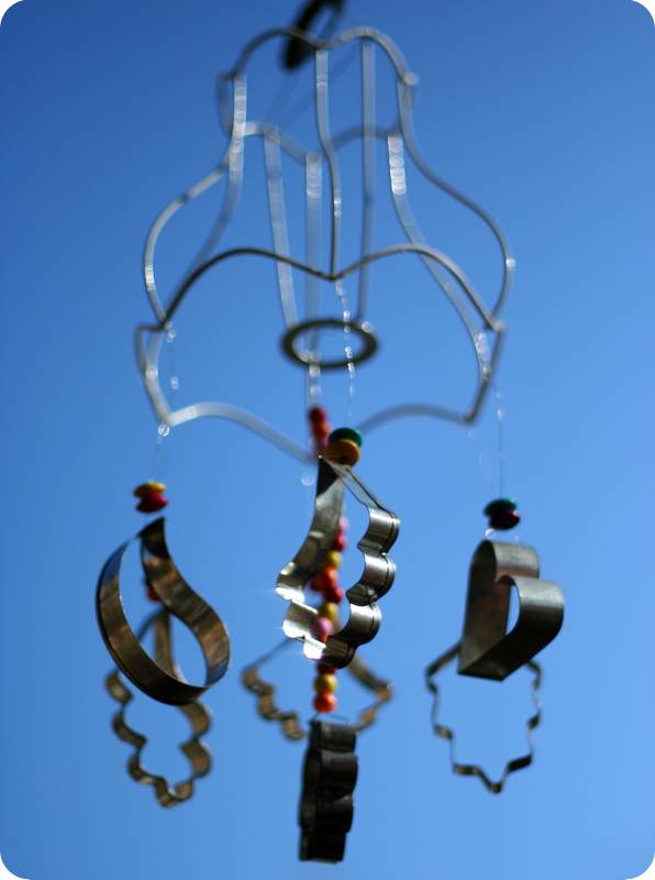 Fäst ståltråd eller snöre i toppen, häng upp i träd eller på balkongen & njut av ljudet från dinglande kakformar : )